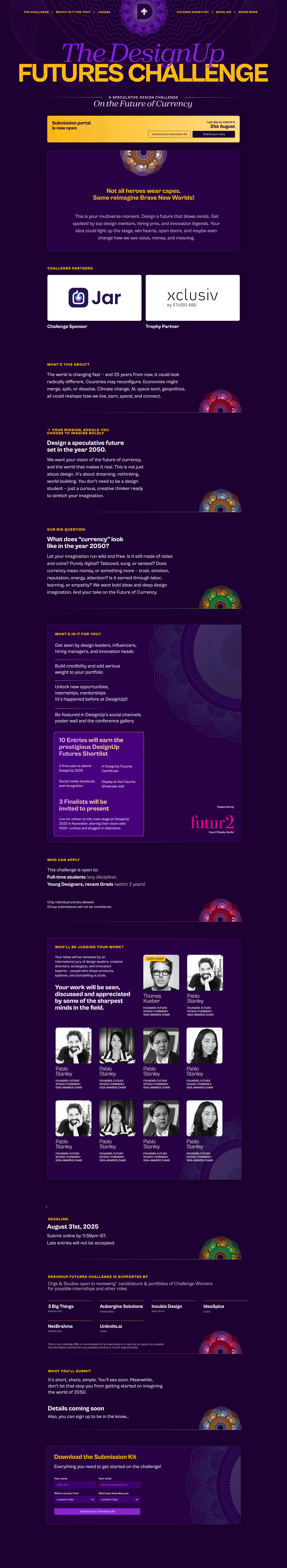 This is your multiverse moment. Design a future that blows minds. Get spotted by top design mentors, hiring pros, and innovation legends. Your idea could light up the stage, win hearts, open doors, and maybe even change how we see value, money, and meaning.